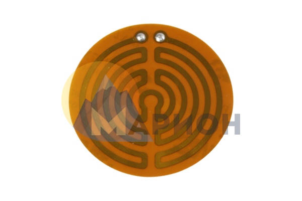 Диаметр нагревателя – 50 мм, толщина – 0,1 мм, максимальная температура нагрева – 170 °C. Мощность – 0,032 кВт, расчетное напряжение – 12 В. Нагреватель монтируется на поверхность с помощью клеевого слоя, вывод питания – две неизолированные контактные площадки под припайку проводов.